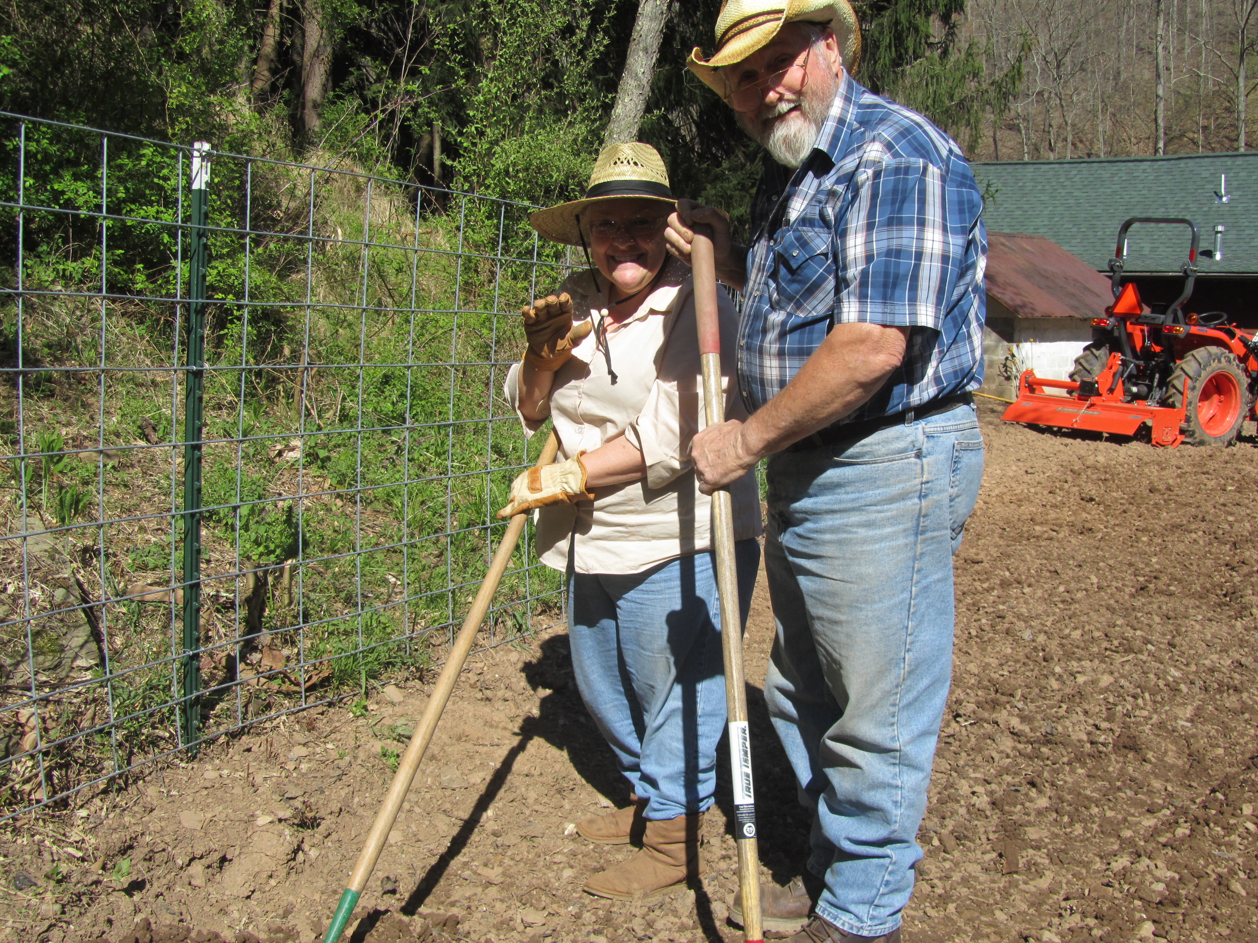By Bill…    Saturday, April 7 – With the help of our Neighbors, Friends, and Mentors, Sonny and Linda Jobe, daughter-in-law Clarissa and grandson “Duke”, we began to create our first West Virginia garden by planting Kennebec potatoes, along with Red and Yellow onion sets.