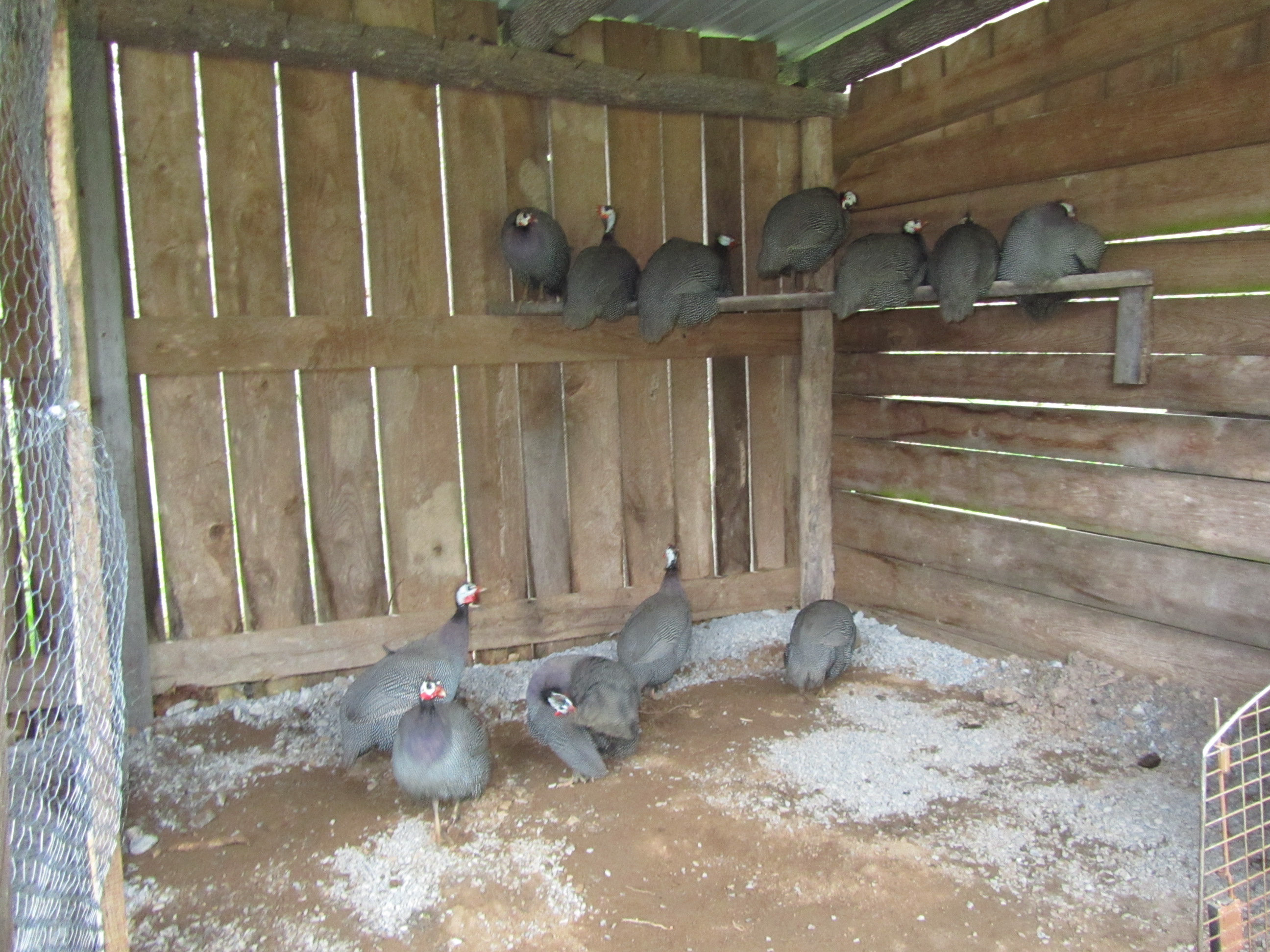 Today we welcomed our new flock of 12 Guineas to Creek Side Cabin Farm (CSCF).